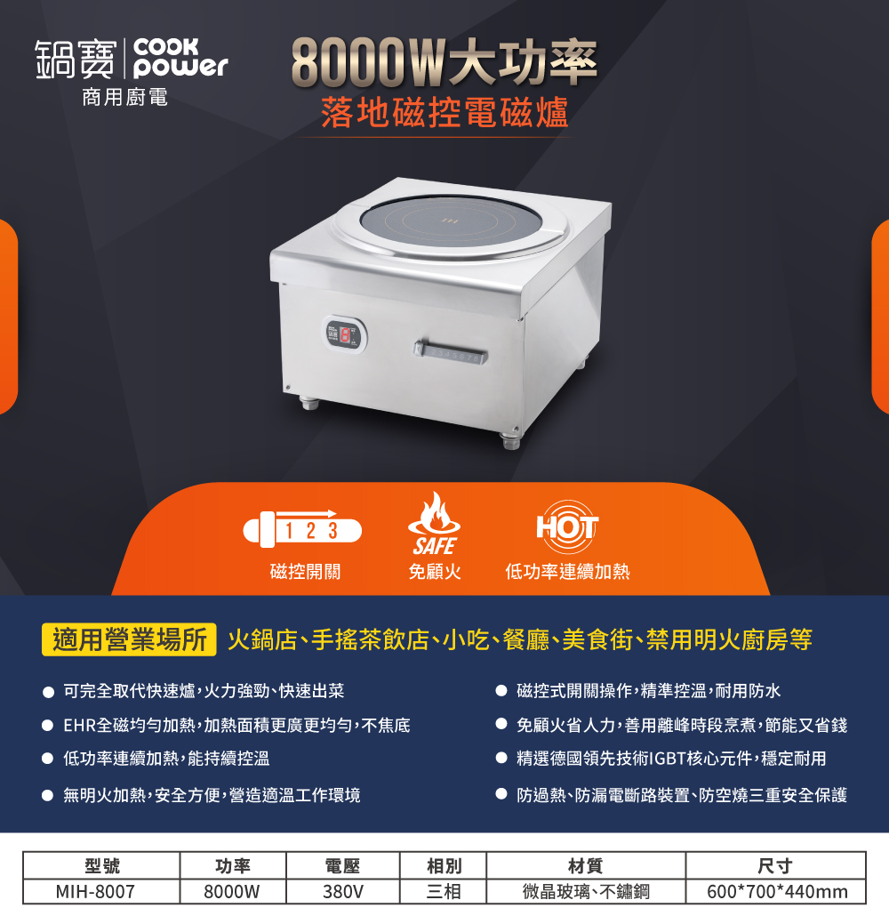 - 產品多樣:3300W-20000W的營業用電磁爐,產品線完整,專業的生產商。